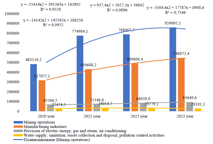 Trend analysis will allow us to move on to the construction of multifactorial regression models, i.e. it is a transition from describing the situation to a more in-depth analysis and management, which will allow us to identify the imbalances in favor of the manufacturing industry and understand the leverage for sustainable and balanced industrial development in the Orenburg region.