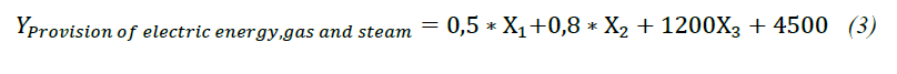 The model for the type of activity providing electric energy, gas and steam includes independent variables – investment, productivity and the introduction of digital technologies:
