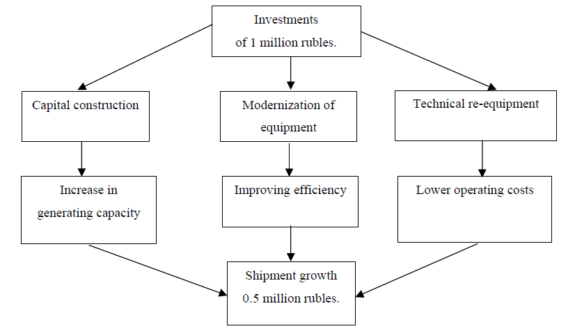Each additional ruble of investment generates 65 kopecks of the increase in shipments, the relatively low efficiency of capital investments indicates the presence of significant irrational investments, a high degree of physical and moral depreciation of fixed assets and insufficient selectivity of the company's investment policy.