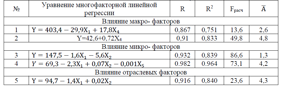 Проведённый корреляционно-регрессионный анализ позволил диагностировать основные закономерности и оценить влияние макро-, микро-, отраслевых факторов на интеграционные взаимоотношения между банками, страховыми и лизинговыми компаниями: