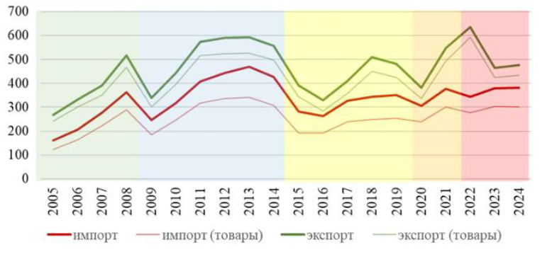 Fig. 3. Russia's foreign trade in goods and services, billion US dollars