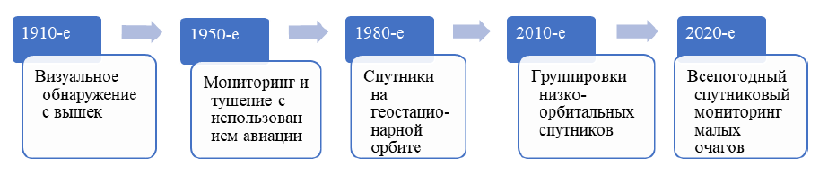 Рис. 2. Эволюция спутниковых технологий для мониторинга лесных пожаров