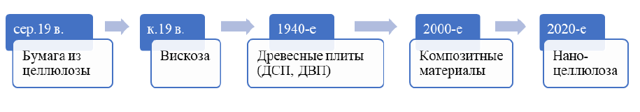 Значимым трендом является интеграция с другими отраслями знания, использование в развитии производств ЛПК наукоемких технологий из других сфер промышленности, что позволяет получить продукцию с новыми, заранее заданными качествами. Древесине придаются характеристики, которыми она не обладает в природе – огнестойкость, полупрозрачность, устойчивость перед грибками и т.д. В результате разрабатываются новые материалы и продукты из древесины. Ярким примером является использование нанотехнологий в целлюлозно-бумажной промышленности, например, создание микрокристаллической целлюлозы. В качестве ответа на постепенное исчерпание углеводородов, из которых создаются синтетические ткани, формируются производства наноцеллюлозы для нужд легкой промышленности (рис. 3). Данный материал отличается высокой прочностью и легкостью.