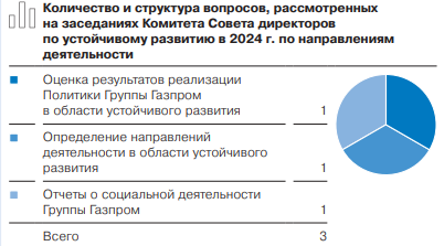 Рис. Вопросы, рассмотренные по устойчивому развитию в 2024 по направлениям деятельности [Отчет ПАО «Газпром» за 2024 …]