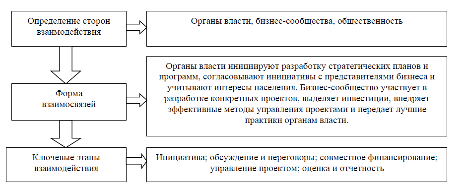 Для успешного взаимодействия важно учитывать интересы всех сторон процесса – государства, бизнеса и общества. Это требует постоянного диалога, обмена информацией и выработки совместных решений. Ученые М.А. Рачунь,